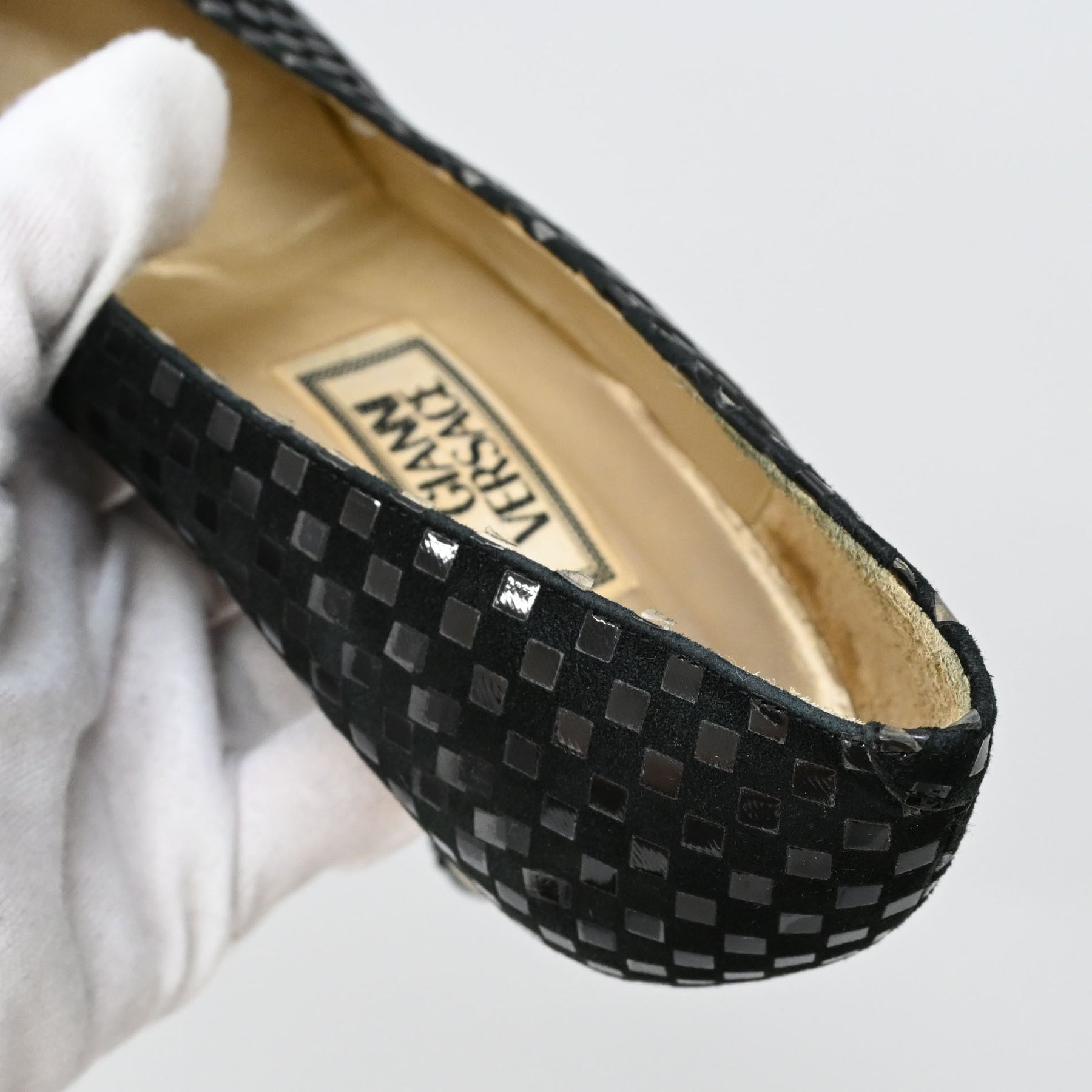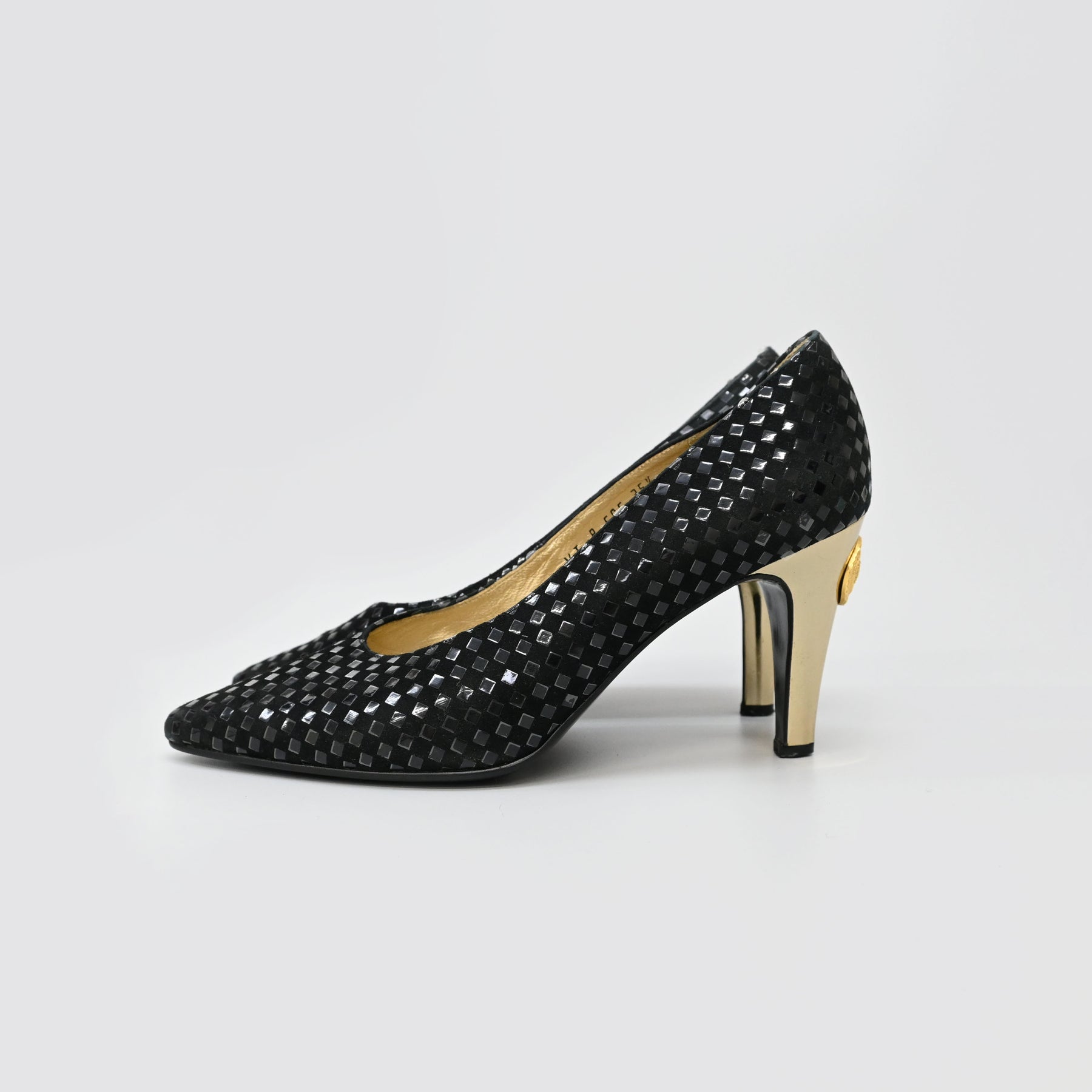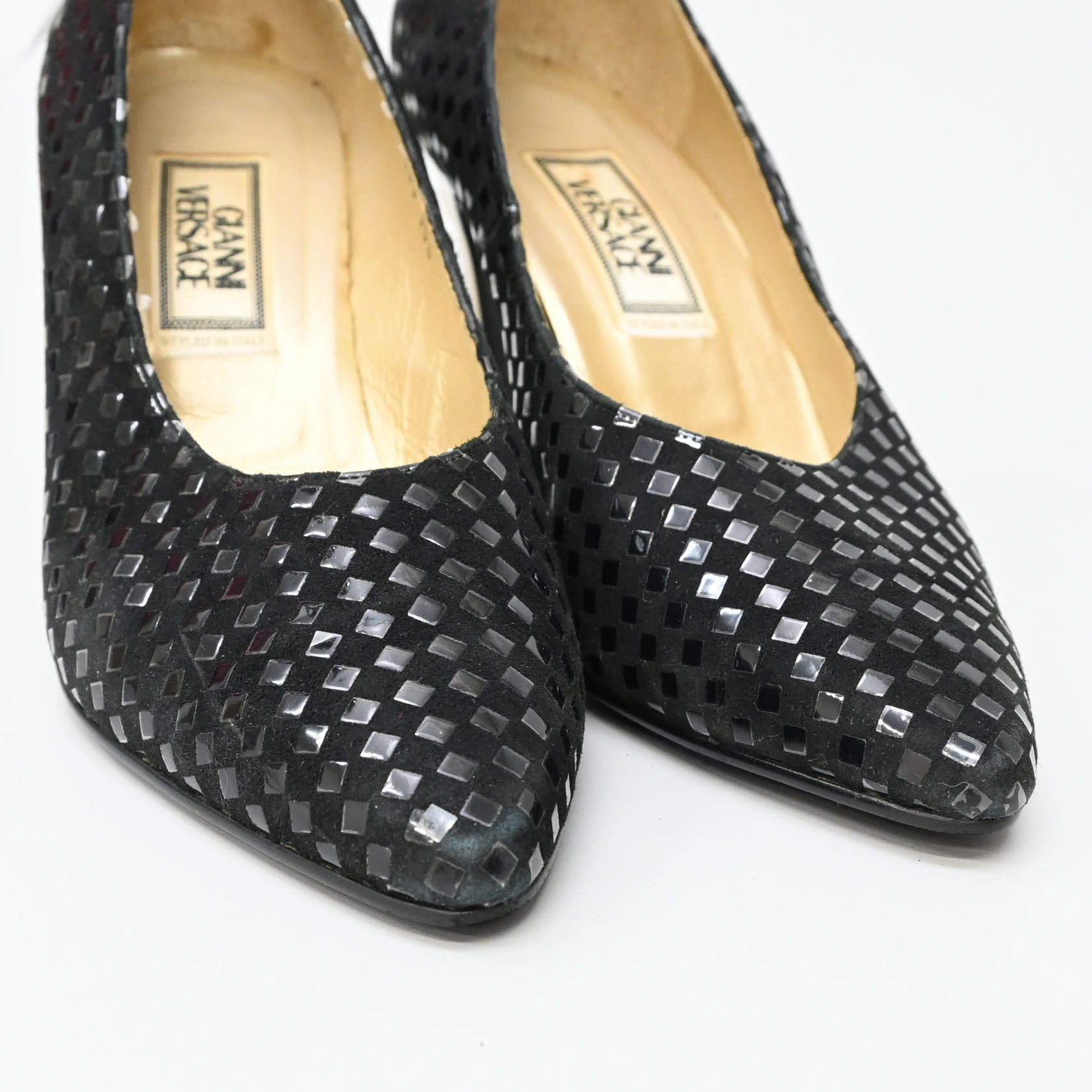 ヒールに削れ、小傷あり。インソール汚れ、シワあり。つま先擦れあり。所々に格子状のデザインの剥がれあり。 26477 |